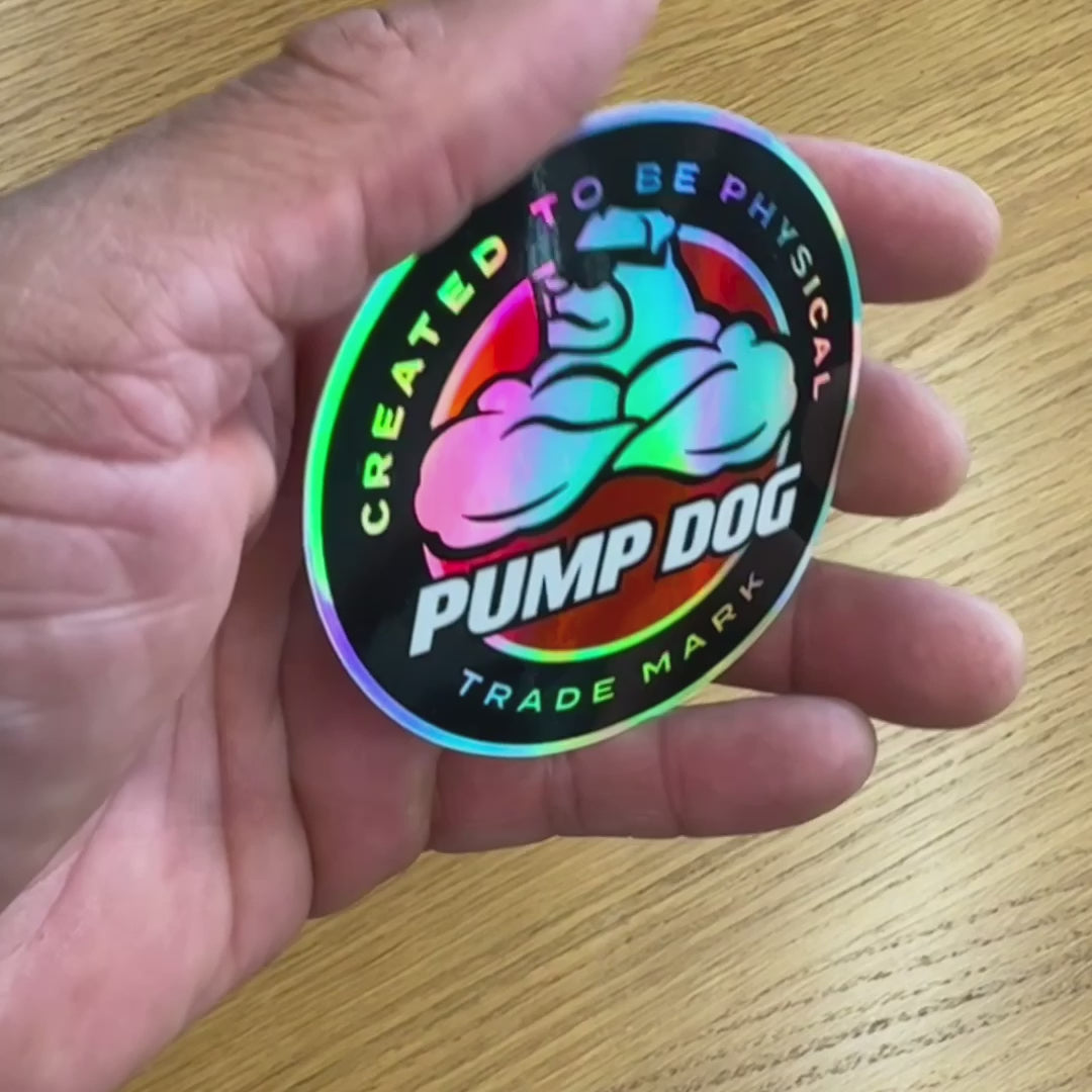 Loud. Loyal. Lift-ready. This 3" holographic Pump Dog sticker is built to stick with you - on your laptop, shaker bottle, squat rack, or wherever you show off your grind.Durable. Water-resistant. And outlined for a clean, bold finish. No fluff. Just flex.